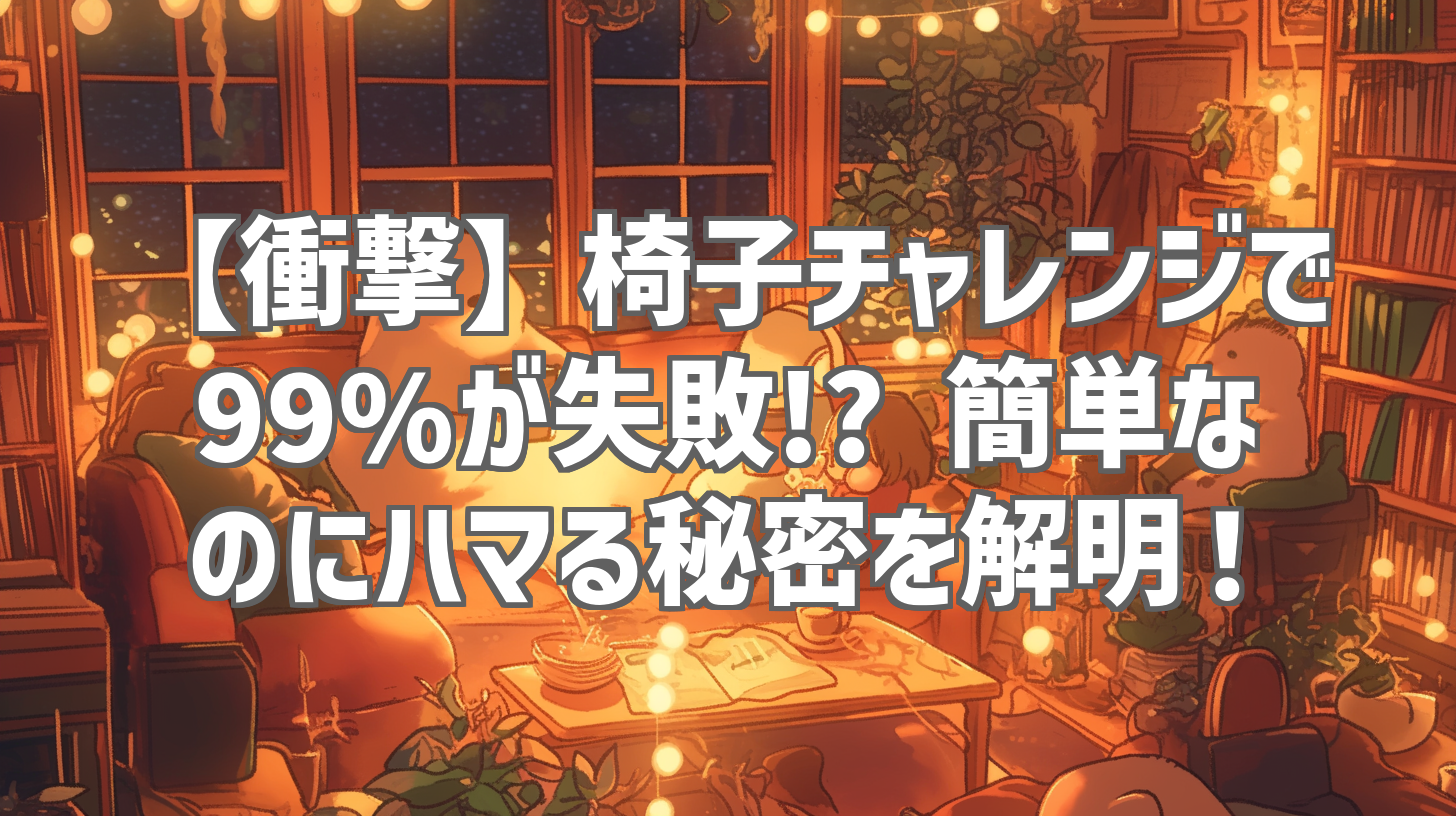 SNSで話題沸騰中の「椅子チャレンジ」。一見簡単そうに見えるのに、なぜかほとんどの人が失敗してしまうという不思議な現象です。私も実際に試してみましたが…見事に失敗!悔しい!そこで、今回はYouTubeチャンネル「ر」さんの動画「みんなを混乱させた椅子チャレンジ 🪑」を参考に、このチャレンジの秘密を徹底解剖していきたいと思います。一体なぜ、こんなにも多くの人が失敗してしまうのでしょうか?その驚きの理由と、成功するためのヒントを探っていきましょう!