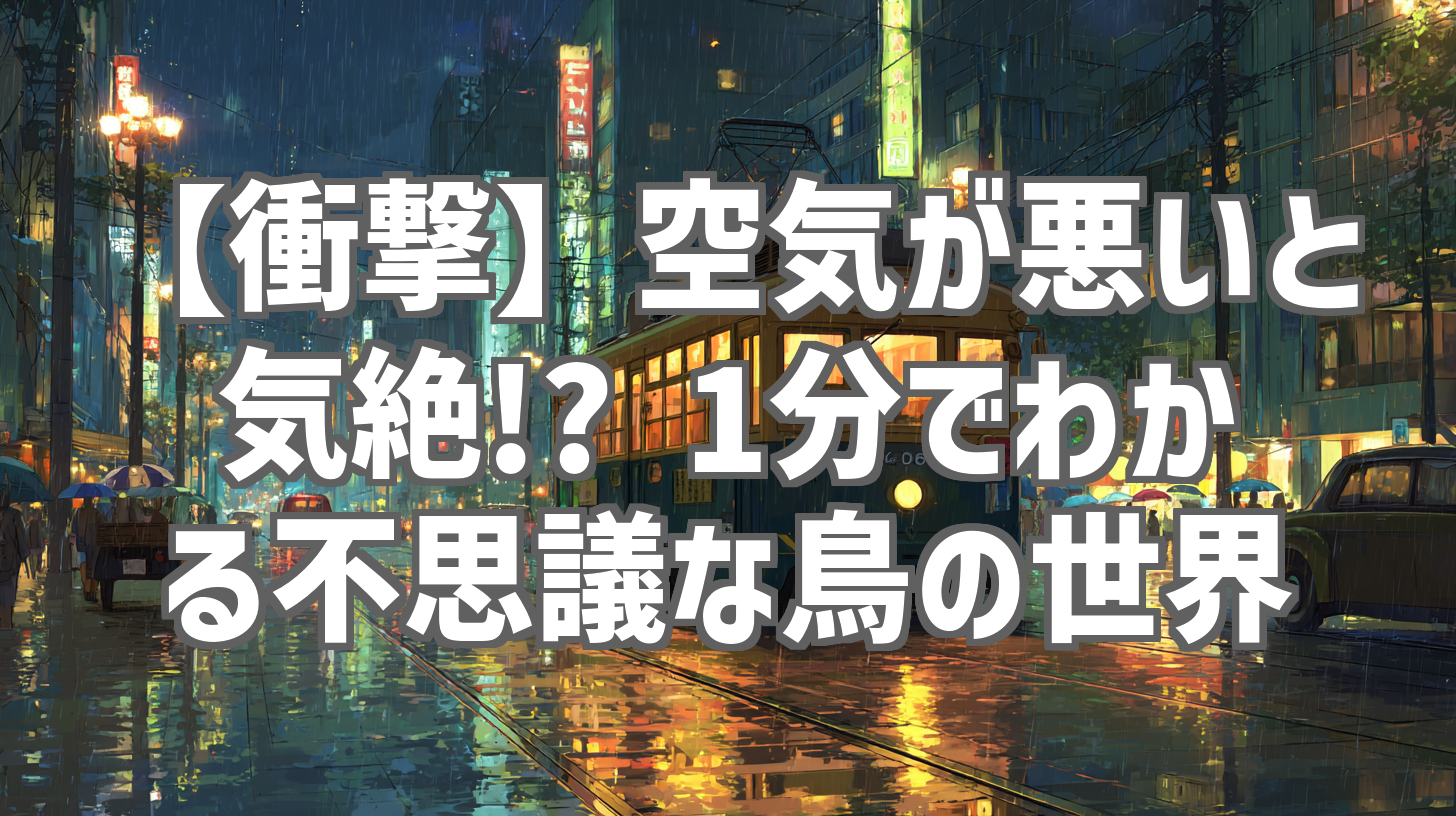 皆さんは、空気が悪いと気絶してしまう鳥がいるって知っていましたか? 今回は、YouTubeチャンネル「1分だけ」で公開されている「空気が悪いと気絶する鳥の正体」という衝撃的な動画を徹底レビューします! たった37秒という短い時間の中で、驚きの生態を持つ鳥について知ることができるんです。私も実際に見て、本当に驚きました! ぜひ、このレビューを読んで、あなたも不思議な鳥の世界に触れてみてください。