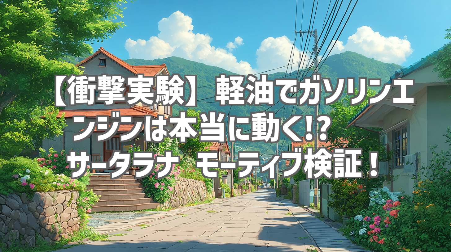 「え、軽油でガソリンエンジンって動くの?」って、私も最初にこの動画のタイトルを見たとき、思わず二度見しちゃいました。だって、小学生でも知ってるレベルで「ガソリンエンジンにはガソリン、ディーゼルエンジンには軽油」って決まってるじゃないですか! それが覆されるかもしれない、そんな期待と不安が入り混じった気持ちで、サータラナ モーティブさんの実験動画を視聴しました。わずか1分という短い動画の中に、エンジニアのロマンと実験のドキドキが詰まっていて、あっという間に見終わってしまいました。この記事では、その衝撃的な実験内容を詳しくレビューし、あなたもきっと試したくなる(いや、ダメですよ!)魅力をお伝えします!