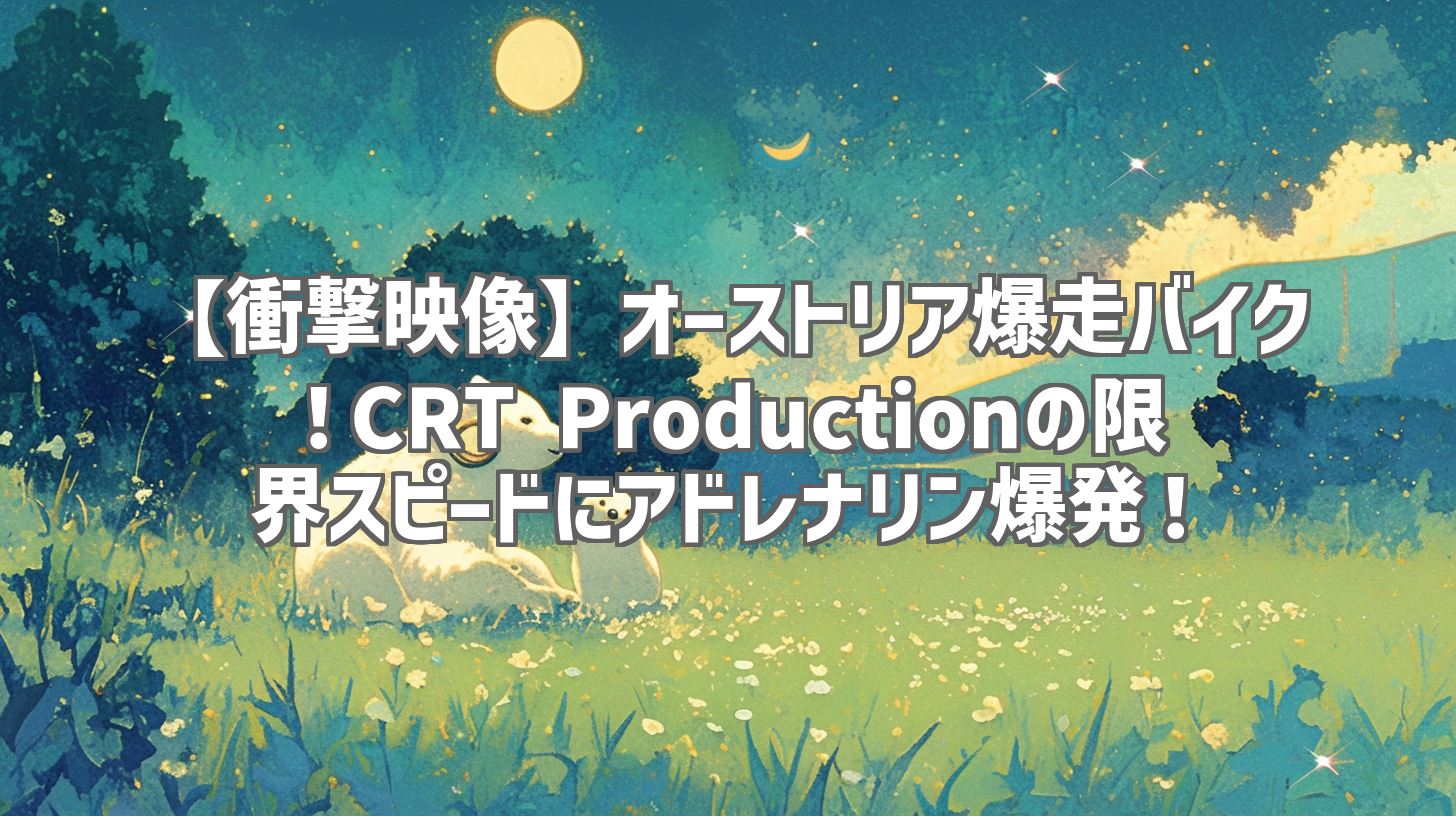 バイク好きはもちろん、そうでない人も、一度見たらきっとハマってしまうはず。ぜひ、この動画をチェックして、CRT Productionの世界を体験してみてください!そして、気に入ったらチャンネル登録も忘れずに!きっと、あなたの日常に、新たな刺激と興奮をもたらしてくれるはずです。