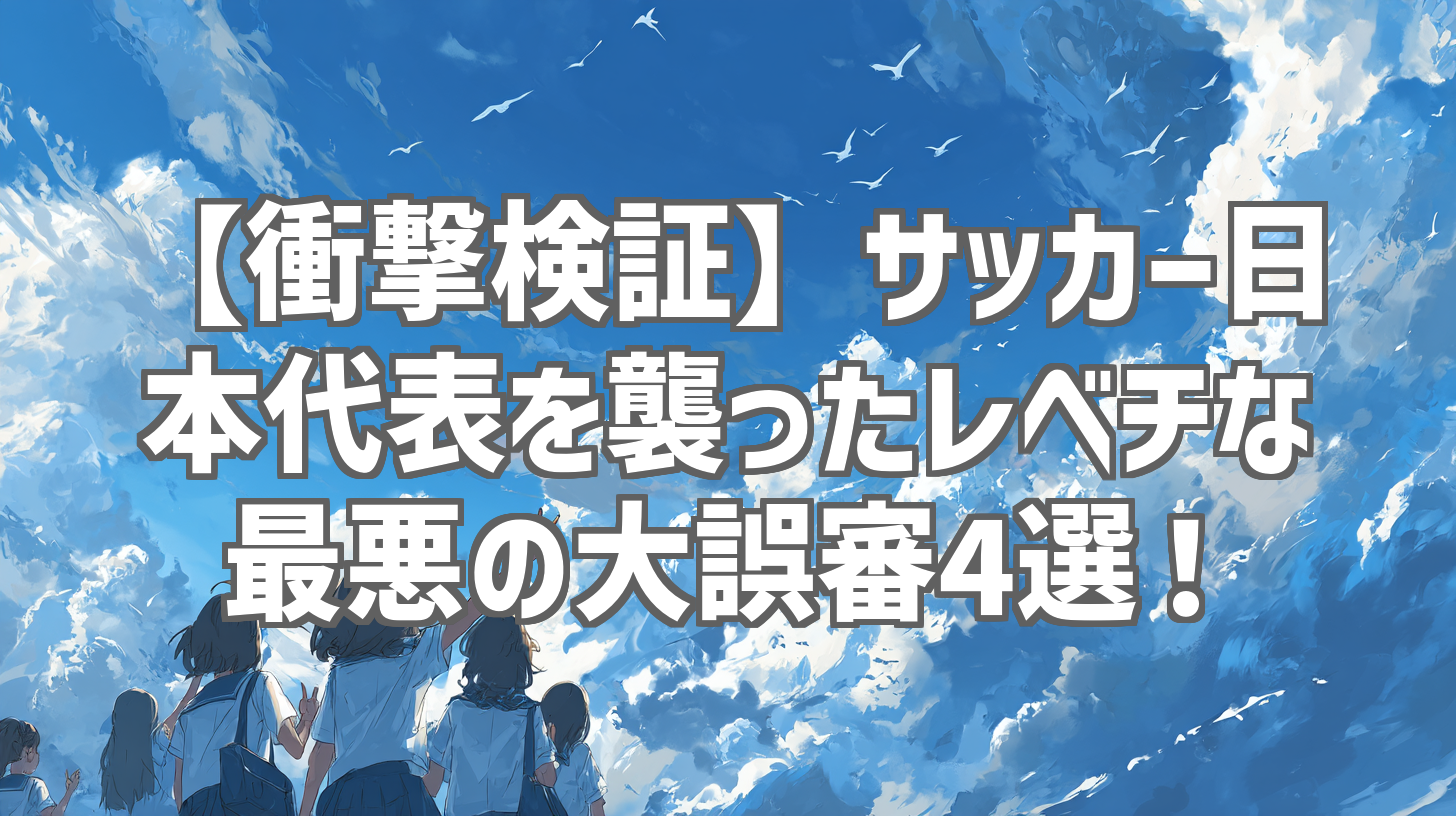 サッカーファンの皆さん、こんにちは!今日は、僕が最近YouTubeで見つけて、思わず「うわっ!」と声が出た衝撃的な動画をご紹介します。その名も「日本代表 レべチ 最悪の大誤審TOP4 #サッカー #日本代表」。もうタイトルだけで胸がザワつきますよね? サッカー日本代表の試合で起こった、まさに「レベチ」としか言いようがない大誤審の数々を、わずか1分4秒という短時間に凝縮して見せてくれるんです。