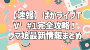 皆さん、こんにちは!ウマ娘トレーナーの皆さん、ぱかライブTV’ #1、見ましたか?!今回はリニューアル後初の放送ということで、期待値MAXで視聴しました!2時間45分超えのボリューム満点の内容でしたが、新情報が盛りだくさんで、あっという間に時間が過ぎましたね!この記事では、そんな「ぱかライブTV’ #1」の見どころをギュッと凝縮して、最新情報を完全網羅していきます!見逃した方、もう一度内容を確認したい方は必見です!