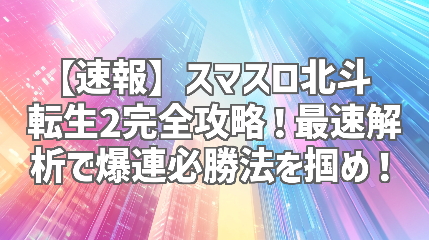 ついに来た!2026年1月5日導入予定の「スマスロ 北斗の拳 転生の章2」の公式解説動画がサミーチャンネルで公開されました。初代転生ファンとしては、これは見逃せない!約1時間の動画を隅々までチェックして、新台導入前に完全攻略を目指します!今回は、動画の内容を徹底的にレビューし、爆連必勝法を探っていきたいと思います。北斗ファンはもちろん、これからスマスロ北斗を打つ人も、絶対にチェックしてください!