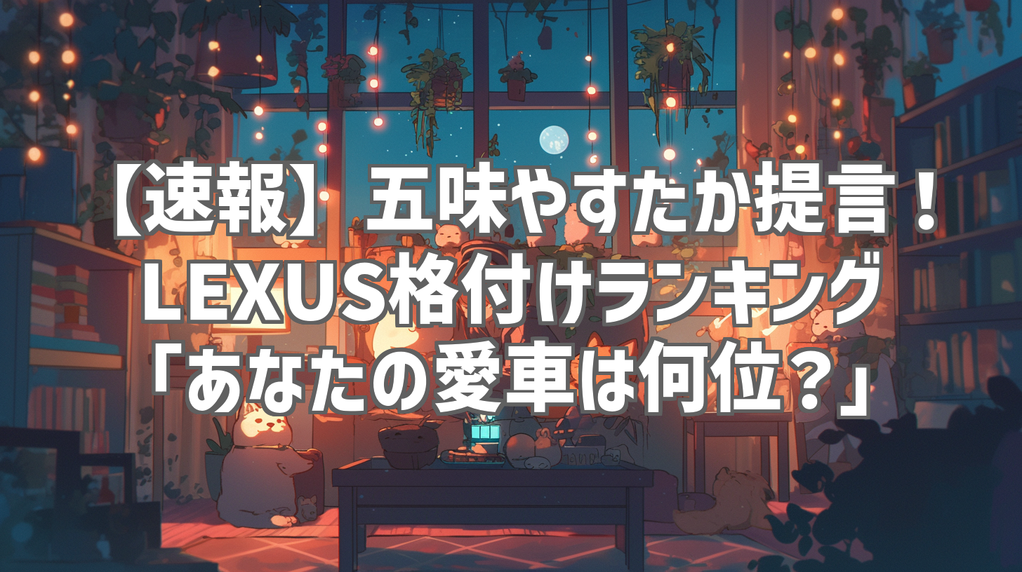 今回は、五味やすたかさんが提言する「LEXUS格付けランキング」の動画をレビューしました。わずか1分24秒という短時間にもかかわらず、五味さんの深い洞察と、視聴者に「あなたの愛車は何位?」と問いかけることで、クルマ好きの知的好奇心と議論を刺激する、非常に濃密な内容でした。