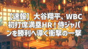 大谷翔平選手のWBC初打席満塁ホームランは、まさに歴史に残る一撃でした。「美しい小倉」さんのYouTube動画は、その興奮と感動を鮮やかに伝えてくれます。まだ見ていない方は、ぜひチェックしてみてください!そして、侍ジャパンを応援しましょう!