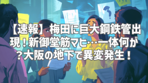 大阪のど真ん中、梅田でとんでもない事が起きました!新御堂筋といえば、大阪の大動脈。それがマヒするほどの事態…一体何が?MBS NEWSが報じた「「ドーンという鈍い音が…」大阪・梅田の路上で『巨大鋼鉄管』が地中から突出 なぜこんな事態に?北摂と結ぶ“大動脈”新御堂筋が一部通行止めで大渋滞【中継】(2026年3月11日)」という動画を、今回は徹底的にレビューしていきます。まさかこんな事が起こるなんて…想像もしていませんでした。大阪の地下で一体何が起こっているのか?真相に迫ります!