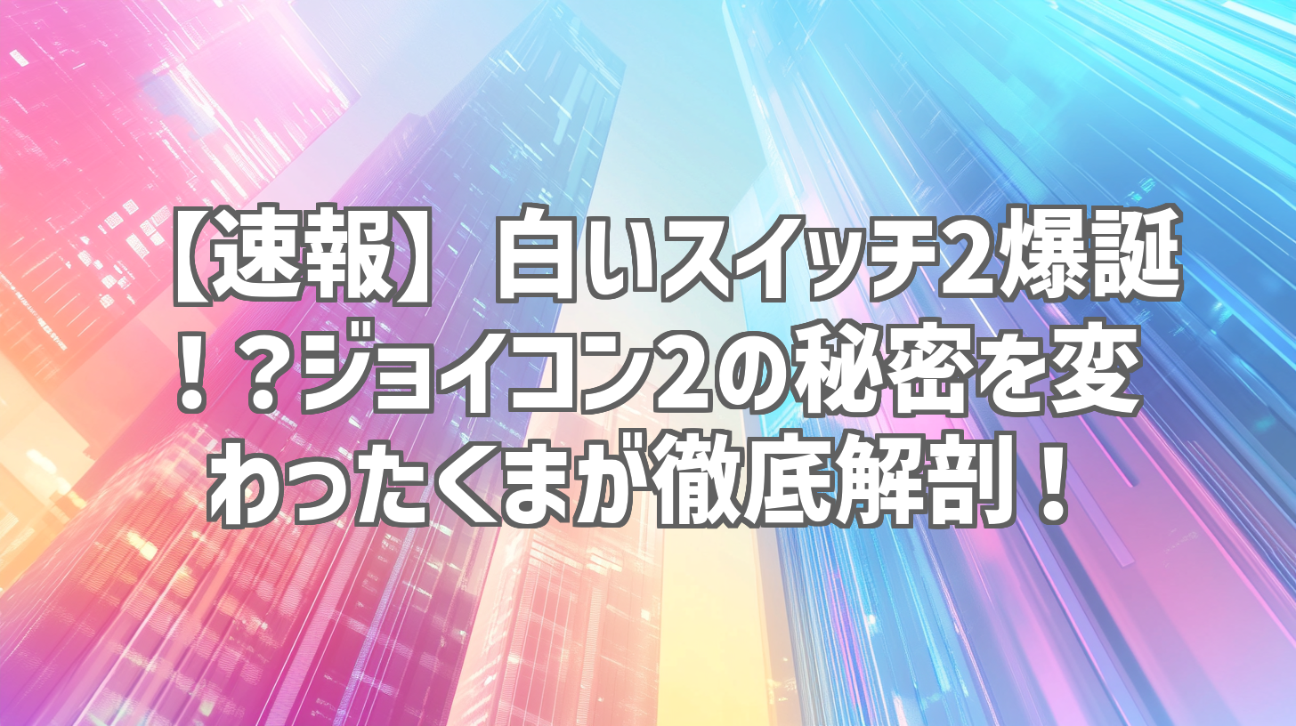 次世代ゲーム機の話題はいつだってワクワクする!今回は、YouTubeチャンネル「変わったくまさん」が公開した「【スイッチ2】これで白いスイッチ2になる!?【ジョイコン2】【Nintendo Switch 2】」という動画を徹底レビューしていきます。巷で噂のNintendo Switch 2、通称「白いスイッチ2」に関する、ジョイコン2の秘密に迫るという内容。たった1分39秒の動画の中に、驚きの情報が詰まっていました!一体どんな内容なのか、早速見ていきましょう!
