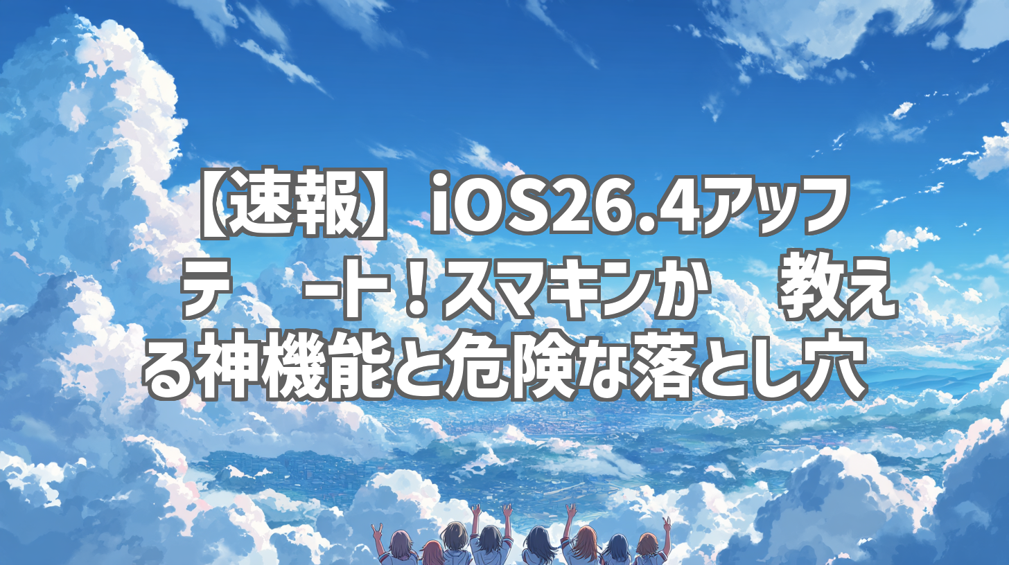 ついにiOS26.4がリリースされましたね!待ちに待ったアップデート、僕も速攻で試してみました。今回のアップデート、スマキンさんの動画「【iPhone】iOS26.4リリース!今すぐ確認したい新機能と注意点!」を参考にしながら進めたんですが、マジで神機能満載!でも、注意点もいくつかあるみたいなので、この記事で詳しくレビューしていきます。特にセキュリティ関連はマジで重要なので、しっかりチェックしてくださいね!