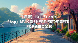 K-POPシーンに常に新たな風を吹き込むHYBE LABELSから、待望のニュースが飛び込んできました!人気絶頂のボーイズグループ、TOMORROW X TOGETHER(TXT)が、最新曲「Can’t Stop」のOfficial MVを公開。この度、当ブログでは、世界中のファンが待ち望んだこの衝撃作「TXT (투모로우투게더) ‘Can’t Stop’ Official MV」を徹底的に深掘りし、その魅力と背景に迫ります。