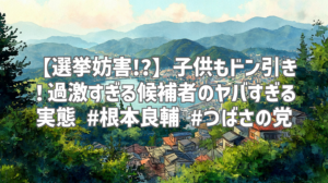 動画は、選挙活動中の根本良輔氏(つばさの党)の様子を捉えています。しかし、その内容は異様な光景でした。街宣車から大音量で他陣営を批判する根本氏。その過激な言葉に、周囲の人々は明らかに困惑している様子です。特に、子供たちが耳を塞いでいる姿は、見ていて非常に心が痛みました。