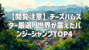 いかがでしたでしょうか? 今回は、「チーズハムスター」さんが厳選した、世界が震えたバンジージャンプTOP4をご紹介しました。 短い動画ながらも、その衝撃的な映像の数々に、きっとあなたもアドレナリンが爆発したはず! まだ見ていない方は、ぜひ動画をチェックして、その衝撃を体験してみてください! そして、気に入ったらチャンネル登録も忘れずに! それでは、次回の動画レビューもお楽しみに!