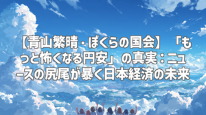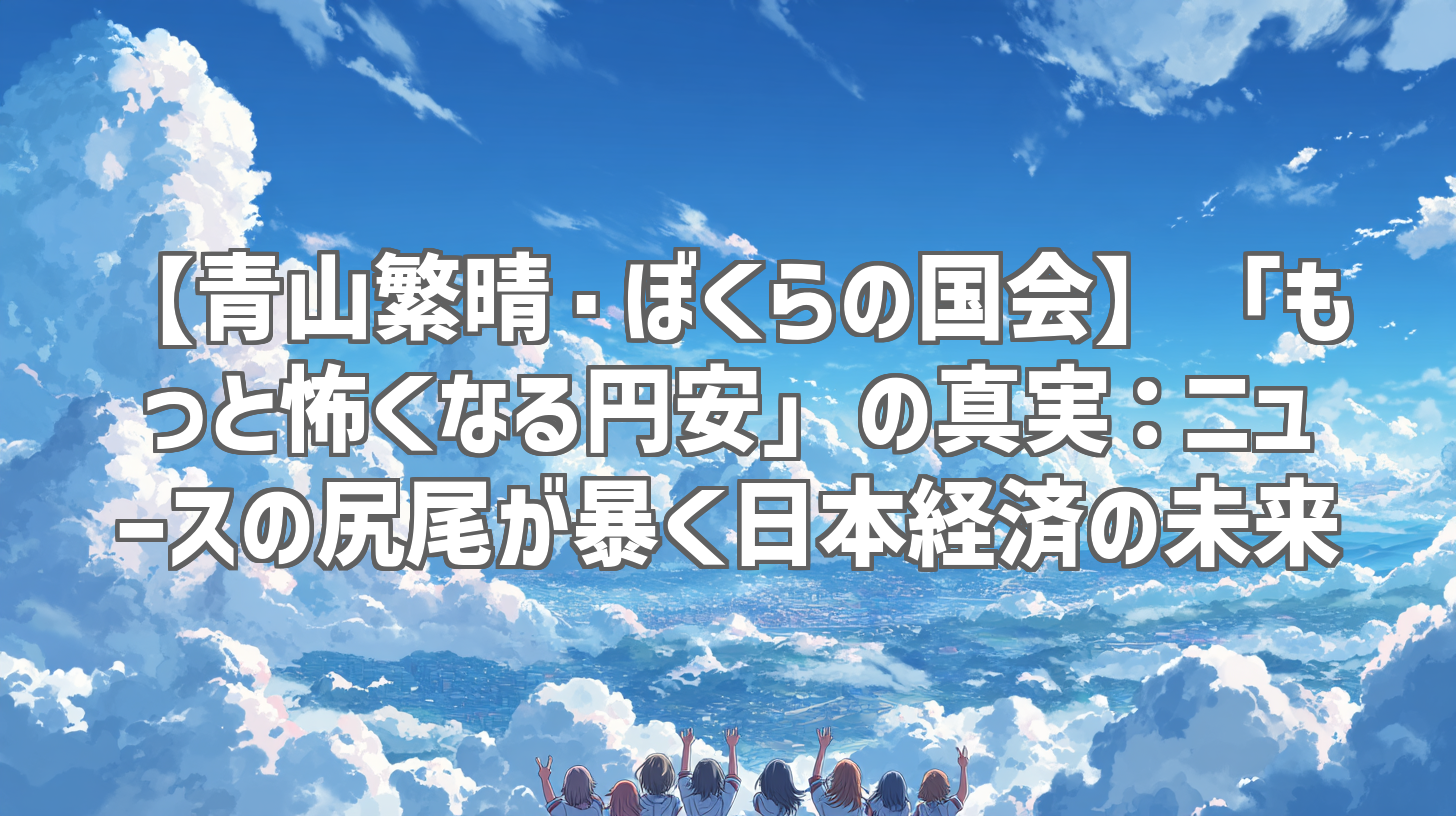 今回の「【ぼくらの国会・第1085回】ニュースの尻尾「これからもっと怖くなる円安」」の動画は、私がこれまで見てきた円安解説動画の中でも、群を抜いて「私たち自身の問題」として深く考えさせられる内容でした。青山繁晴氏が語る「もっと怖くなる円安」の真実は、単なる経済指標の変動ではなく、日本の未来、そして私たちの生活の質そのものに直結する、極めて重要なテーマです。