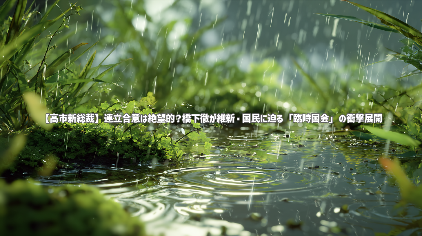 今回ご紹介した動画「自民・高市新総裁が誕生…「臨時国会前に連立合意にいきつく可能性は低い」維新・藤田氏×国民・古川氏×橋下徹【日曜報道】」は、高市新総裁誕生後の日本の政治が直面する、連立合意という喫緊の課題と、その裏にある各党の複雑な思惑を鮮やかに描き出しています。日本維新の会・藤田氏と国民民主党・古川氏の言葉から読み取れる慎重な姿勢、そして橋下徹氏の鋭い洞察は、今後の政局を理解する上で不可欠な視点を提供してくれます。