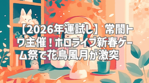 新年早々から目が離せない、ホロライブの祭典が今年も開催!常闇トワ様主催の「#ホロ新春ゲーム祭2026」は、総勢多数のホロメンが花鳥風月に分かれて様々なゲームで競い合う、新年の幕開けを飾るにふさわしい一大イベントです。6時間40分超えという超ボリュームながら、一瞬たりとも飽きさせない熱い戦いが繰り広げられました。今回は、その模様を徹底的にレビューしていきます!新年最初の運試し、そして推しの活躍を見逃すな!