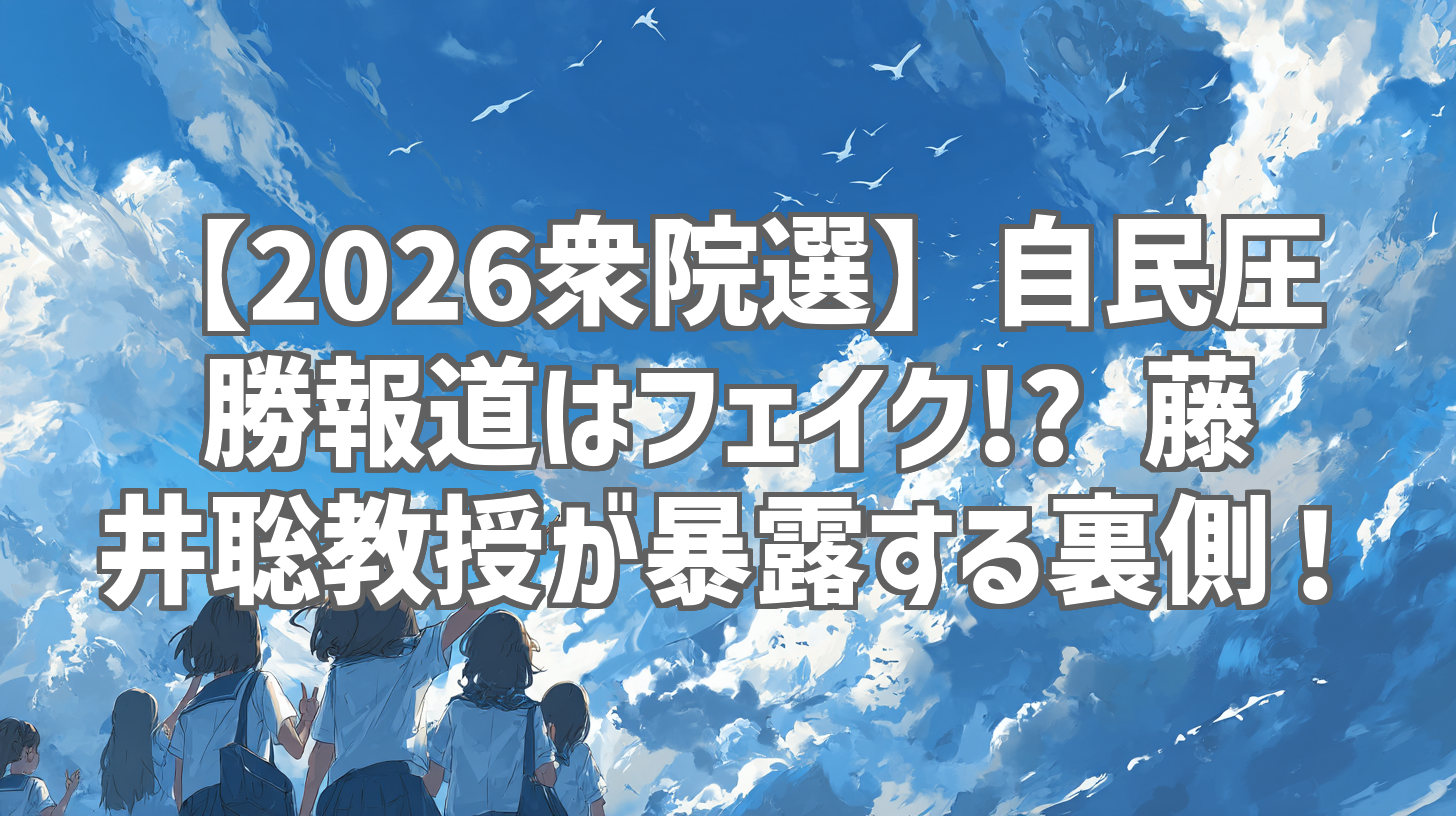 2026年の衆議院選挙を前に、自民党圧勝という報道が飛び交う中、「本当にそうなのか?」と疑問に思っている方も多いのではないでしょうか。私もその一人です。今回の記事では、京都大学大学院教授の藤井聡氏が、文化放送「おはよう寺ちゃん」のサブチャンネルで公開された動画で、この報道の裏側を鋭く分析しています。選挙情勢に不安や疑問を感じている方は必見の内容です!藤井先生の冷静かつ論理的な解説は、私たち有権者が正しい判断をするための重要な視点を与えてくれます。
