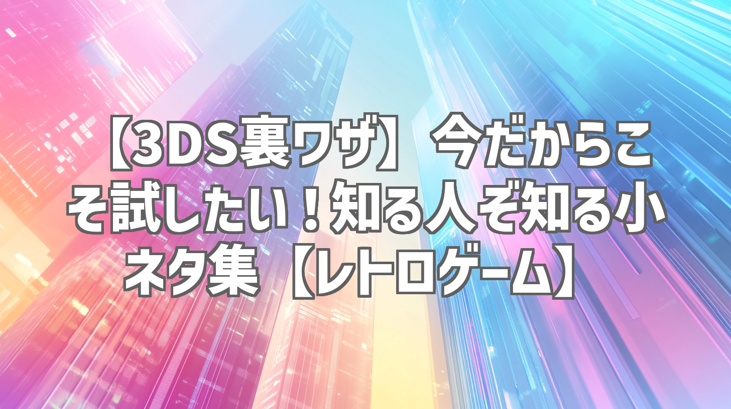 今回の動画では、3DSのちょっと変わった小ネタが紹介されていました。普段何気なく使っているゲーム機にも、意外な機能やバグが隠されているものなんですね。