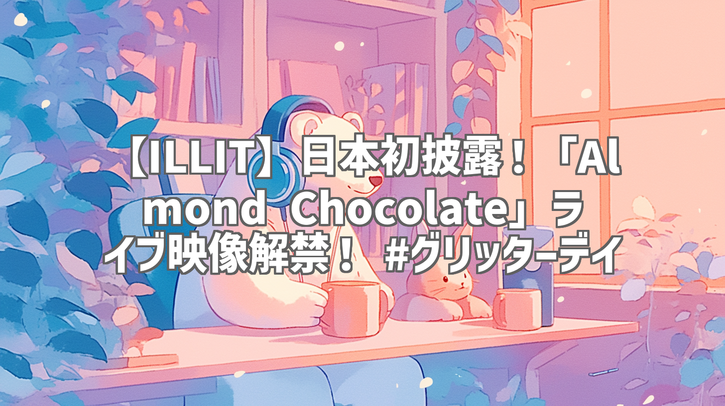 ついにILLITが日本で「Almond Chocolate」を初披露!先日公開されたGLITTERDAY IN JAPANでのライブ映像が、もうすでに話題沸騰中です。私もリアルタイムで視聴しましたが、彼女たちのパフォーマンスの完成度、そして何よりも可愛さに圧倒されました…! 今回のブログでは、この話題のライブ映像を徹底的にレビューしていきます。見どころ満載なので、ぜひ最後までチェックしてくださいね!