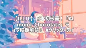 ついにILLITが日本で「Almond Chocolate」を初披露!先日公開されたGLITTERDAY IN JAPANでのライブ映像が、もうすでに話題沸騰中です。私もリアルタイムで視聴しましたが、彼女たちのパフォーマンスの完成度、そして何よりも可愛さに圧倒されました…! 今回のブログでは、この話題のライブ映像を徹底的にレビューしていきます。見どころ満載なので、ぜひ最後までチェックしてくださいね!