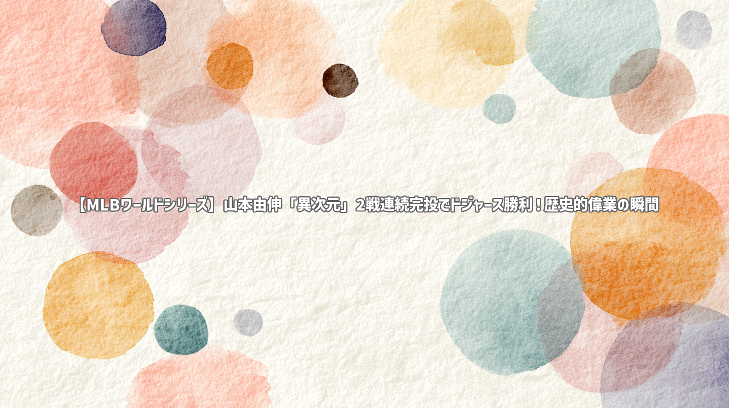 スポーツ史にその名を刻む、まさに「異次元」としか表現しようのない偉業が達成されました。MLBの最高峰、ワールドシリーズという大舞台で、ロサンゼルス・ドジャースの山本由伸投手が、なんと2戦連続の完投勝利という信じられないパフォーマンスを披露したのです。