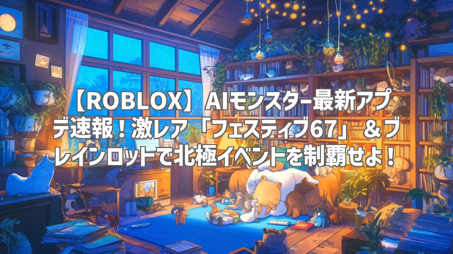 | 記事タイトル | 【ROBLOX】AIモンスター最新アプデ速報!激レア「フェスティブ67」&ブレインロットで北極イベントを制覇せよ! |