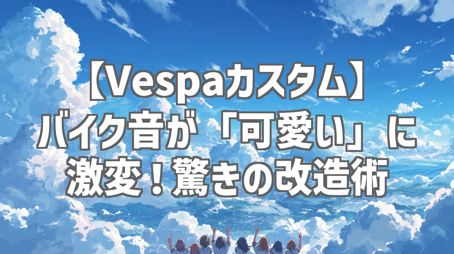 | 記事タイトル | 【Vespaカスタム】バイク音が「可愛い」に激変!驚きの改造術 |