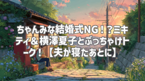 結婚式の理想と現実、そしてママたちの本音トークが炸裂!今回は、人気番組「夫が寝たあとに」から、歌手のちゃんみなさんをゲストに迎えた爆笑必至のショート動画をピックアップ。ミキティこと藤本美貴さんと横澤夏子さんと繰り広げる、結婚式に対する赤裸々な意見交換は、これから結婚を控える方はもちろん、既婚者も思わず共感してしまう内容なんです!わずか28秒の中に、笑いと共感、そしてちょっぴり考えさせられるメッセージが詰まった、濃密な動画レビューをお届けします。