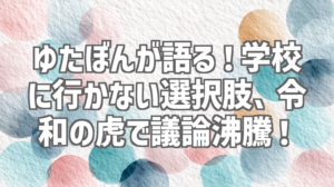 動画の中心となるのは、「学校に行かない選択」についての議論です。ゆたぼんさんは、自身の経験を踏まえ、「学校に行かない」という選択肢もアリだと語ります。