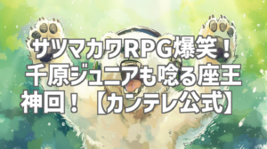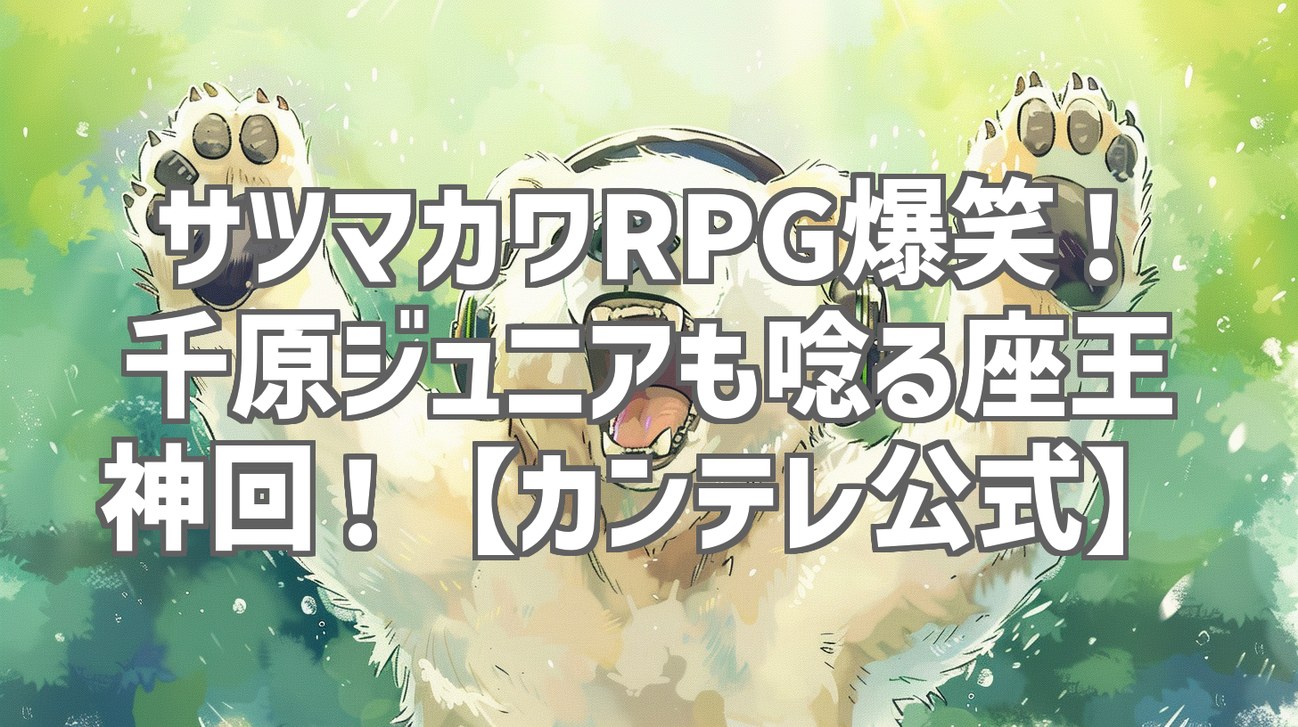 サツマカワRPGの爆笑動画、いかがでしたでしょうか?千原ジュニアも唸ったその独創性と、30秒に凝縮された笑いのエッセンスは、一度見たら病みつきになること間違いなし!まだ見ていない方は、ぜひ今すぐチェックしてみてください。そして、「カンテレ笑タイム【公式】」チャンネルを登録して、日々の生活に笑いをプラスしましょう!