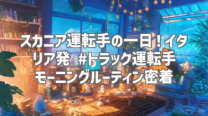 この動画は、Federico Baffoさんがスカニアのトラックで出発する前のモーニングルーティンを捉えたものです。わずか1分20秒という短い動画の中に、トラック運転手のリアルな日常が凝縮されています。