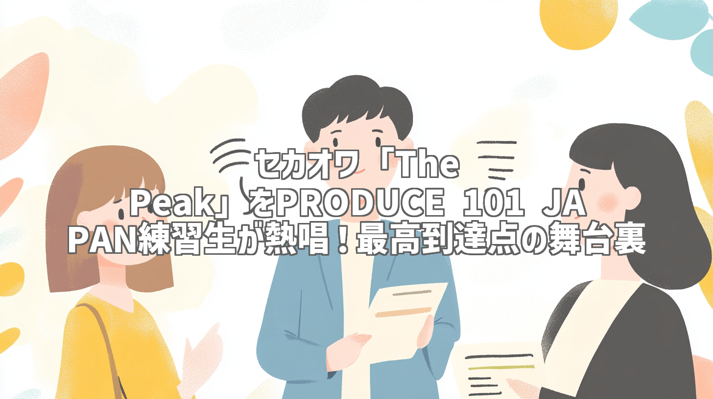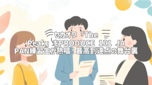 PRODUCE 101 JAPAN 新世界から、またもや目が離せないパフォーマンス動画が公開されました!今回は、SEKAI NO OWARIの名曲「The Peak (最高到達点)」を練習生たちがカバー。単なるカバーに留まらず、彼らの情熱と努力が詰まった、まさに「最高到達点」を目指す舞台裏を垣間見ることができる熱い映像となっています。一体どんなドラマが繰り広げられたのか?パフォーマンスの完成度は? 徹底的にレビューしていきます!