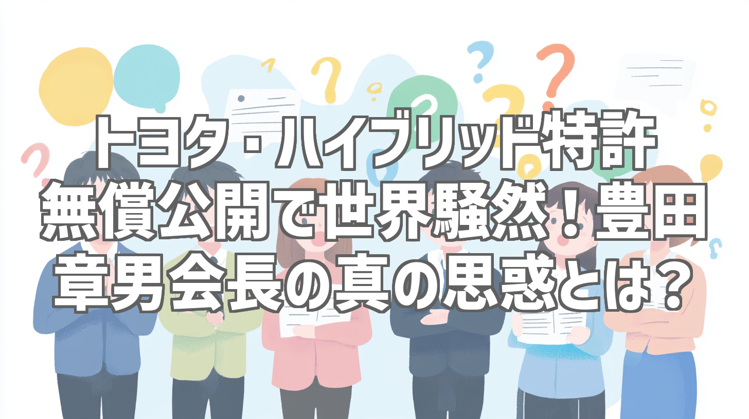 | 記事タイトル | トヨタ・ハイブリッド特許無償公開で世界騒然!豊田章男会長の真の思惑とは? |