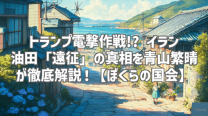 今回の「ぼくらの国会」は、青山繁晴さんがトランプ大統領が示唆したイランの油田「遠征」について、ニュースの裏側を徹底的に解説する注目の回です。国際情勢、エネルギー問題、そしてアメリカの政治戦略まで、多岐にわたる視点から深く掘り下げられており、非常に興味深い内容となっています。私も実際に動画を視聴しましたが、青山さんの鋭い分析と分かりやすい解説に、あっという間に時間が過ぎてしまいました。普段ニュースを見ているだけではなかなか理解できない国際政治の複雑な動きを、深く理解するためのヒントが満載です。