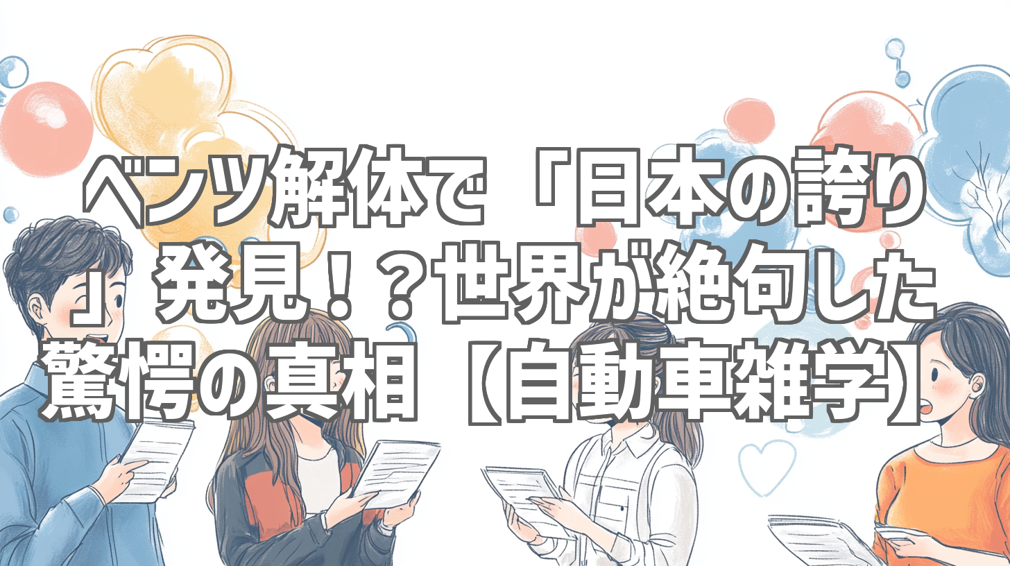 最近、YouTubeで「ベンツを解体したら、日本の誇りが見つかった!」という衝撃的な動画が話題になっています。タイトルは少し煽り気味ですが、一体何が「日本の誇り」なのか、気になって夜も眠れませんでした(笑)。ということで、実際に動画をじっくり視聴し、その真相を徹底的にレビューしていきたいと思います! 自動車好きはもちろん、ちょっとした雑学に興味がある方にもおすすめの内容ですよ。