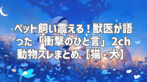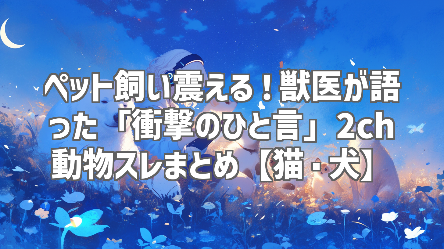 私たちペット飼いにとって、獣医さんはまさに命の恩人。でも、時として彼らから飛び出す言葉は、衝撃的だったり、思わず笑ってしまうものだったり、はたまた深く考えさせられるものだったりしますよね。今回ご紹介するのは、そんな獣医さんからペット飼いが言われた「衝撃のひと言」を2chスレからまとめた動画。短尺ながらも、その共感度と破壊力に、私は思わず画面の前で吹き出してしまいました。
