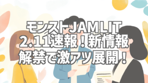 待ちに待ったモンストJAMLIT 2.11がついに公開!今回も驚きの新情報が盛りだくさんで、モンストファンならずとも目が離せない内容になっています。7時間超えの超大作ですが、私もリアルタイムで視聴し、興奮冷めやらぬ状態でこの記事を書いています。この記事では、そんな激アツなJAMLIT 2.11の見どころを徹底的にレビュー!見逃せないポイントをギュッと凝縮してお届けします!