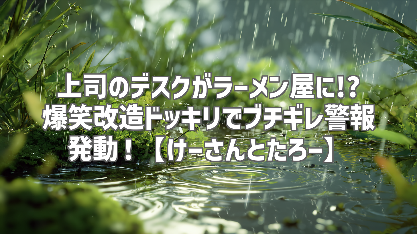 日頃の疲れやストレスが溜まっている皆さん、この動画は最高の気分転換になりますよ!上司のデスクがラーメン屋になるという非日常的な光景が、きっとあなたの心を軽やかにしてくれるはずです。