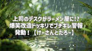 オフィスで働く皆さん、デスク周りって仕事のモチベーションに直結しますよね。整理整頓されたデスクは気持ちがいいし、ちょっとした工夫で作業効率もアップ。でも、もしあなたのデスクが、ある日突然、まさかの「ラーメン屋のカウンター」に大変身していたらどうしますか?