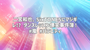 嵐の二宮和也さんと、人気グループSixTONESのメンバーがダンスレッスンで繰り広げる爆笑必至のやり取りをまとめた動画が、YouTubeで話題沸騰中です!わずか35秒という短い時間の中に、二宮さんのツッコミやSixTONESの個性あふれるキャラクターが凝縮されており、何度もリピートしてしまう中毒性があります。ファンならずとも楽しめる、笑いとユーモア満載の動画を、今回は徹底的にレビューしていきます!
