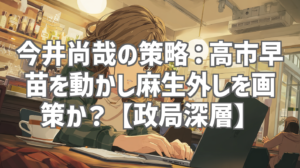 動画の冒頭で、鮫島氏は今井尚哉氏の動向に焦点を当て、彼がどのような戦略で政局を動かそうとしているのかを解説します。特に注目すべきは、高市早苗氏を担ぎ上げ、麻生太郎氏の影響力を削ぐという大胆なシナリオです。