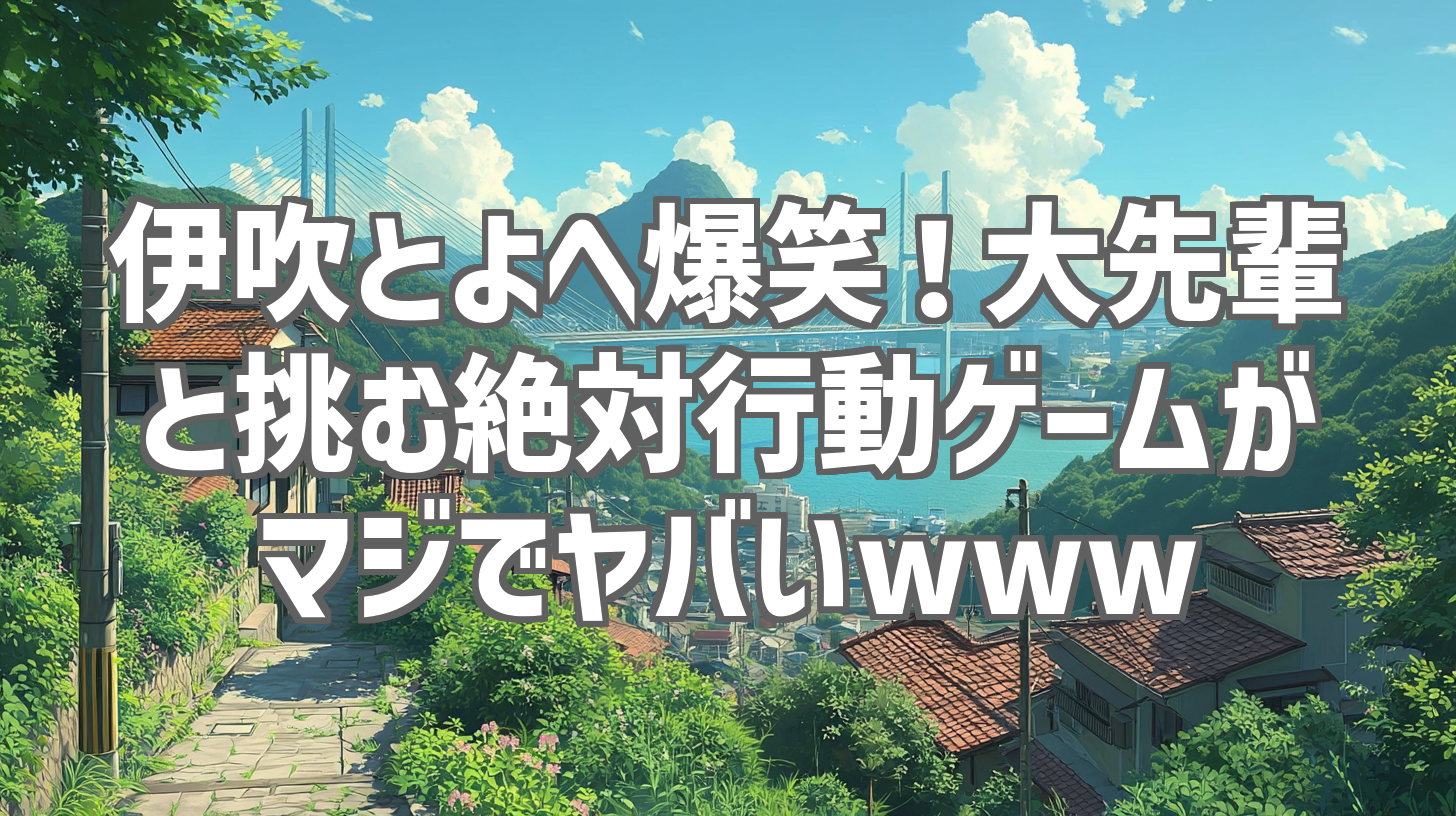 伊吹とよへの最新動画「大先輩と絶対行動ゲームwww」を見た感想を、熱量MAXでお届けするぞ!たった58秒の中に、笑いと衝撃がこれでもかと詰め込まれていて、マジで中毒性高すぎ。電車の中で見るのは危険!絶対に笑いをこらえる自信がないから、家でゆっくり見ることをおすすめするよ。今回は、そんな爆笑必至の動画を徹底的にレビューしていく!