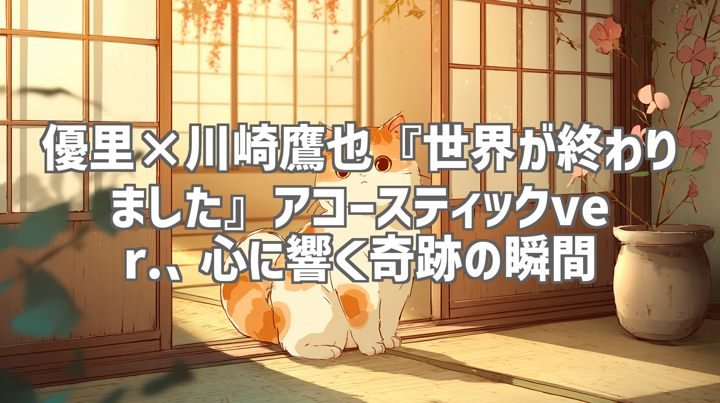 優里さんと川崎鷹也さんという、今をときめく二人のアーティストが織りなす奇跡のハーモニー。『世界が終わりました』のアコースティックバージョンが、優里さんの公式YouTubeチャンネルで公開され、その美しさに心を奪われました。原曲の持つ切なさはそのままに、アコースティックならではの温かさと、二人の歌声が重なり合うことで生まれる感情の爆発力は、まさに圧巻。何度もリピートして聴いてしまう、そんな魅力的な動画を徹底レビューします!