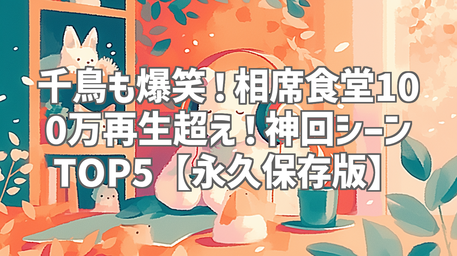 まとめ動画Clip🎥さんの「🎉100万再生!【相席食堂 面白いシーンTOP5】 #お笑い #面白集 #千鳥 #最高のシーン #面白い動画 #shorts #相席食堂」は、相席食堂の面白さが凝縮された、まさに神回と言える動画です。千鳥の2人のツッコミ、個性的なゲスト、そして、短い時間の中に詰まった笑い…どれをとっても最高です!この記事を読んで少しでも興味を持った方は、ぜひ一度動画を見てみてください。きっと、あなたも相席食堂の虜になるはず!笑いすぎてお腹が痛くなること間違いなしですよ!(笑)