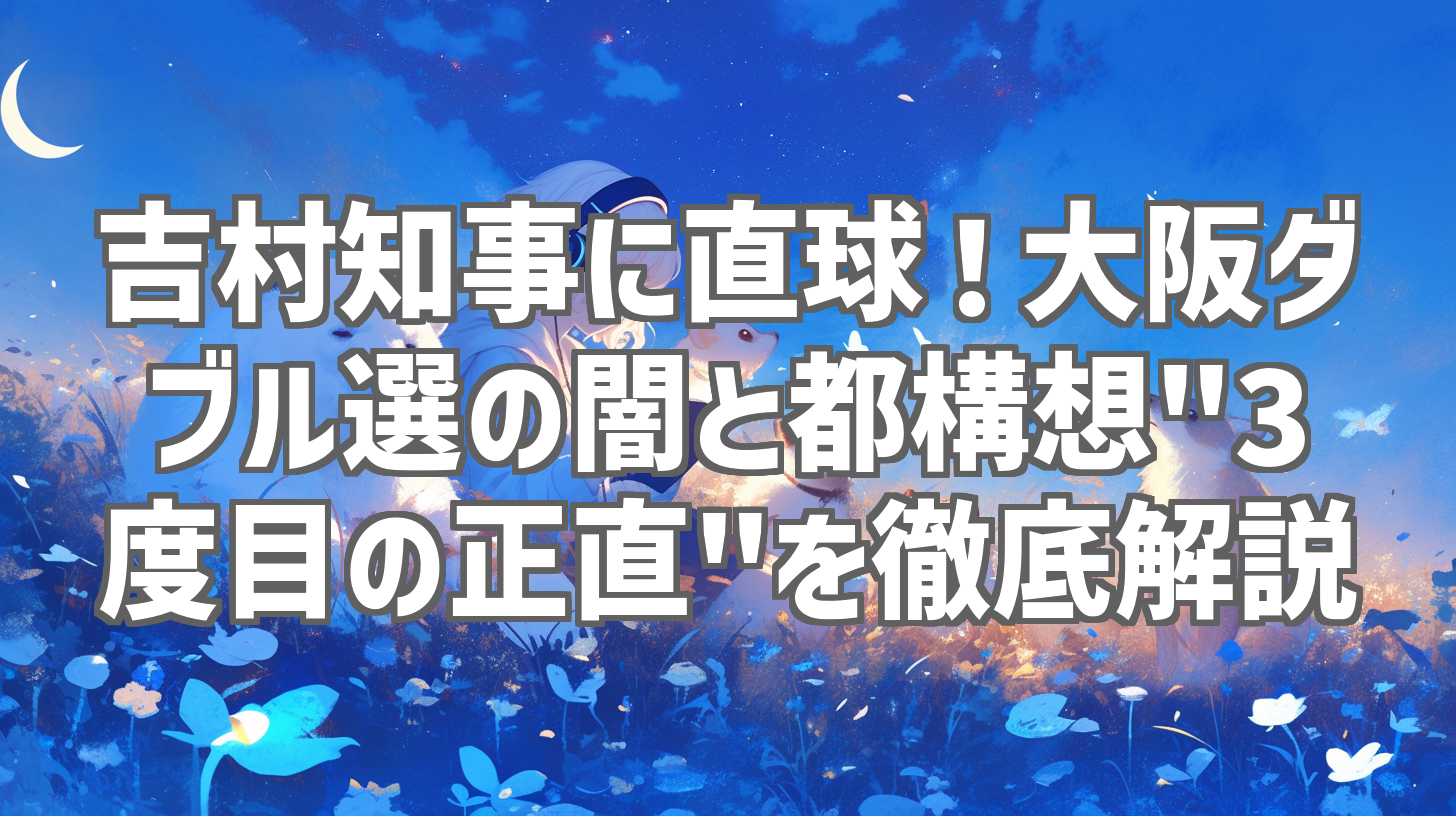 動画は、大阪府知事選と大阪市長選が同時に行われる、いわゆる「ダブル選」に焦点を当てています。吉村知事が任期満了を待たずに辞職し、出直し選挙に打って出た背景には、大阪都構想への再挑戦という明確な意図があります。しかし、そのタイミングや手法には、様々な疑問の声が上がっています。