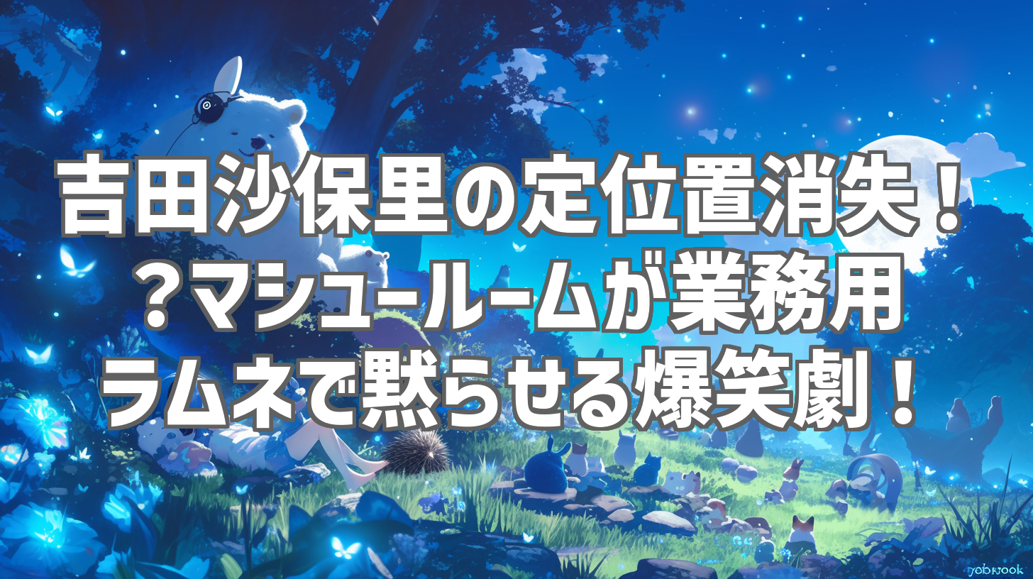 今回の動画は、吉田沙保里さんの”定位置”を巡る騒動に、業務用ラムネという予想外のアイテムが登場する、まさに爆笑必至のエンターテイメント作品でした。マシュールーム🍄🏡さんのセンスが光る、シュールで面白い動画をぜひご覧ください!きっとあなたも、マシュールームワールドにハマってしまうはず!まだ見ていない方は、今すぐYouTubeで「マシュールーム🍄🏡」を検索して、動画をチェックしてみてくださいね!