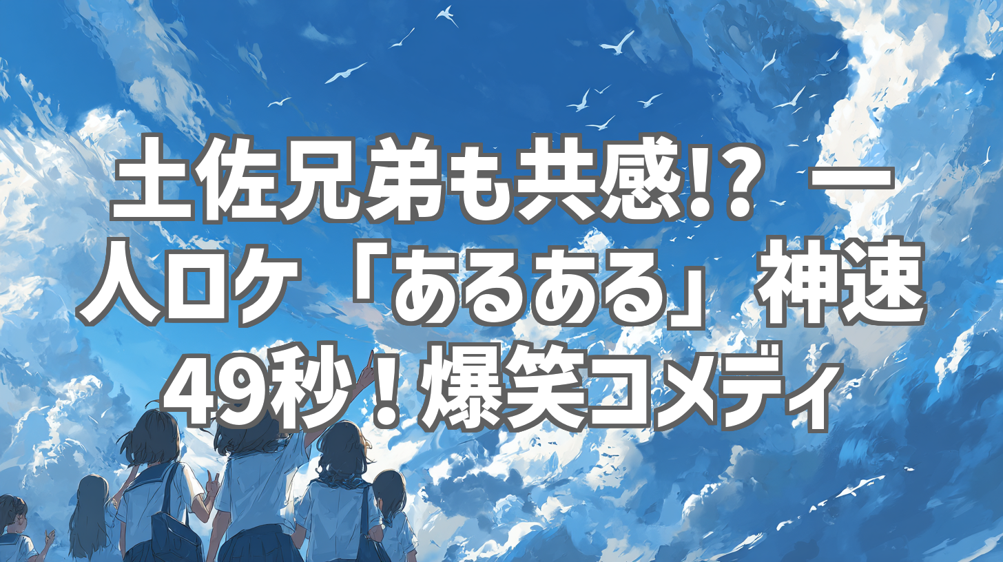土佐兄弟の「一人ロケがやりやすい瞬間」は、一人ロケ経験者なら絶対に共感できる、爆笑必至のショートコメディです。たった49秒の中に、一人ロケの苦労や喜びが凝縮されており、見終わった後は、きっと誰かと語り合いたくなるはず。まだ見ていない方は、ぜひ一度チェックしてみてください!そして、共感したら、ぜひコメントで教えてくださいね!