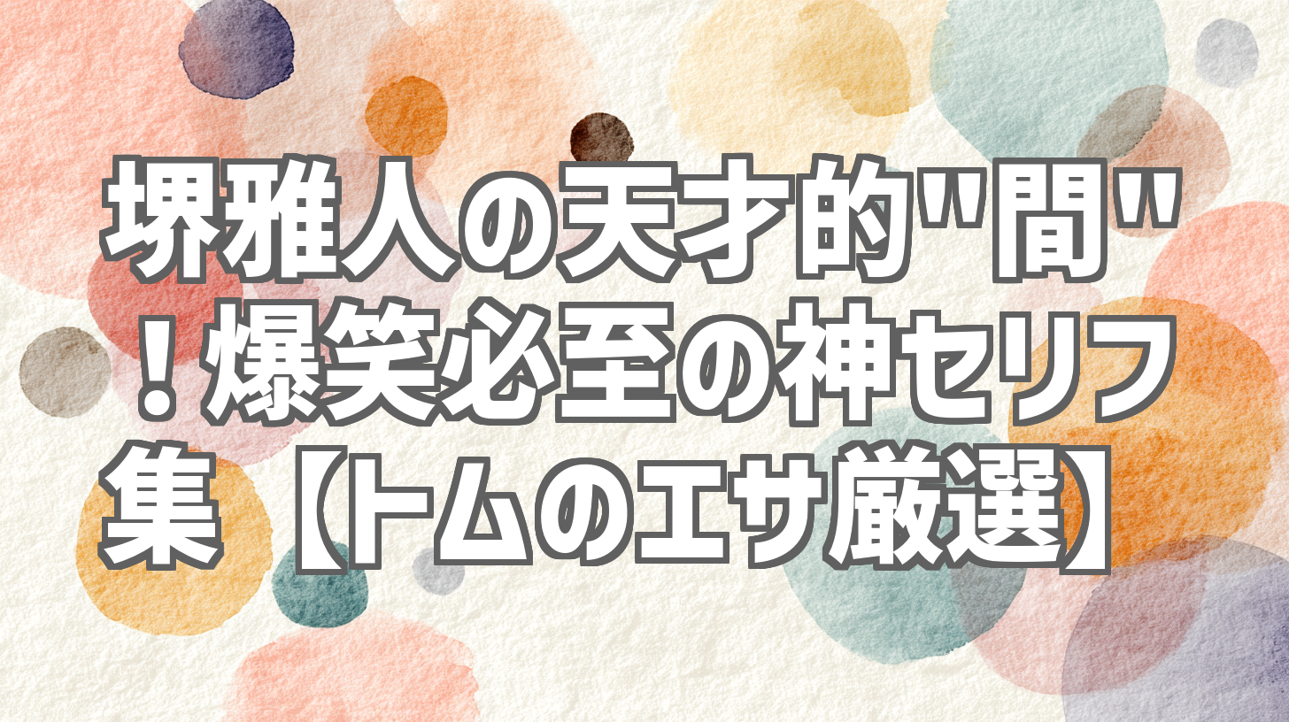 堺雅人さんの演技力、特にあの独特の”間”!彼のセリフ回しは、ただ面白いだけじゃなく、心にグッとくるものがありますよね。今回の「トムのエサ」さんの動画は、そんな堺雅人さんの名演技が凝縮された、まさに神セリフ集。たった57秒の中に、笑いと感動が詰まっていて、何度もリピートしてしまいました。今回は、この中毒性MAXな動画を、SWELLの装飾機能をフル活用して徹底的にレビューしていきます!堺雅人ファンはもちろん、ちょっと笑いたいあなたも、ぜひ最後まで読んでみてください!