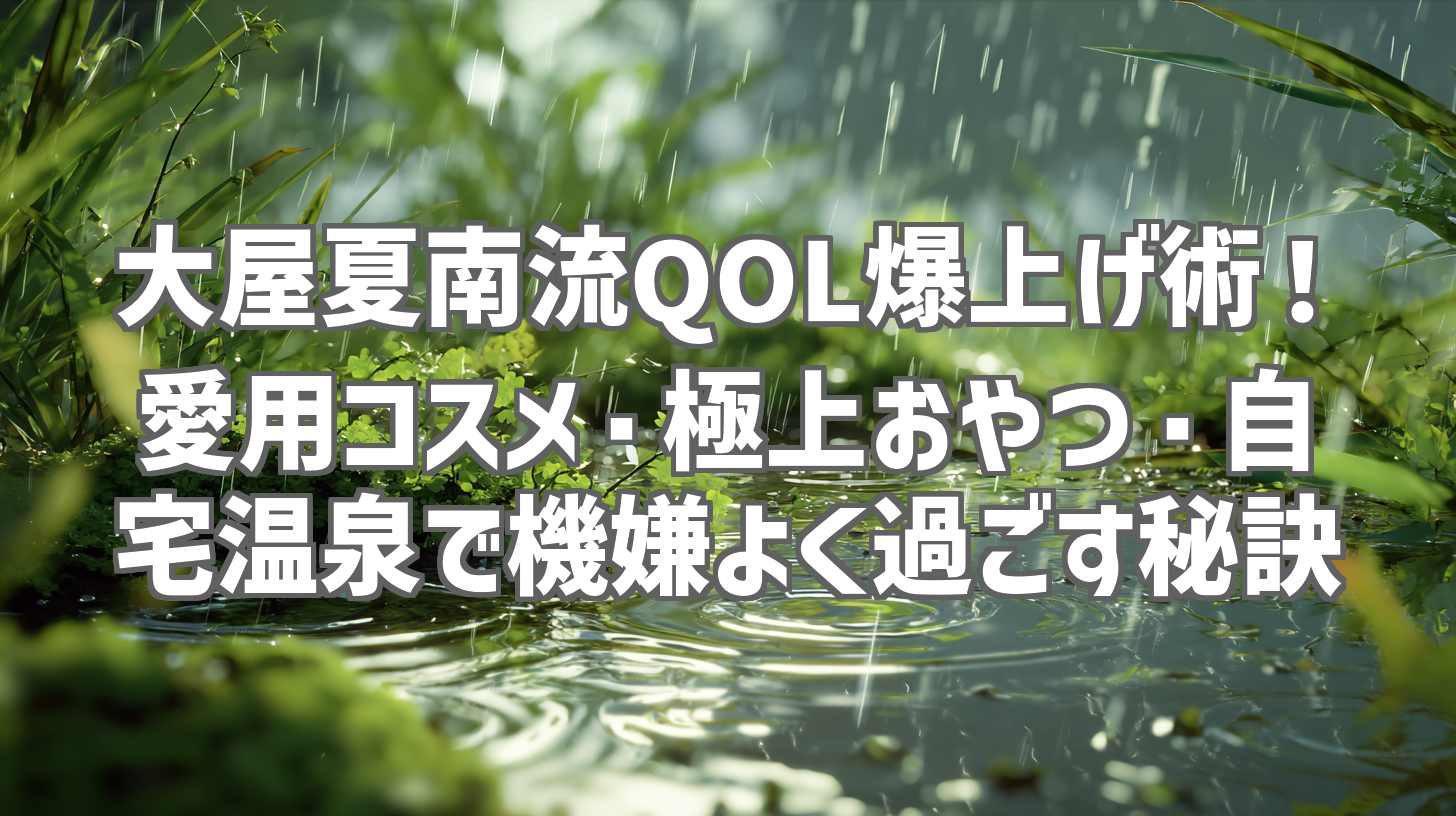 今回の動画では、大屋夏南さんがQOLを爆上げするために取り入れている様々な工夫を紹介していただきました。愛用コスメ、おやつ、自宅温泉など、どれもすぐに真似できるものばかりで、私も早速取り入れてみようと思っています。皆さんもぜひこの動画を参考に、日々の生活をより豊かに、そして機嫌よく過ごせるように工夫してみてください。動画をまだ見ていない方は、ぜひチェックしてみてください!きっと、あなたのQOLも爆上がりすること間違いなしです!