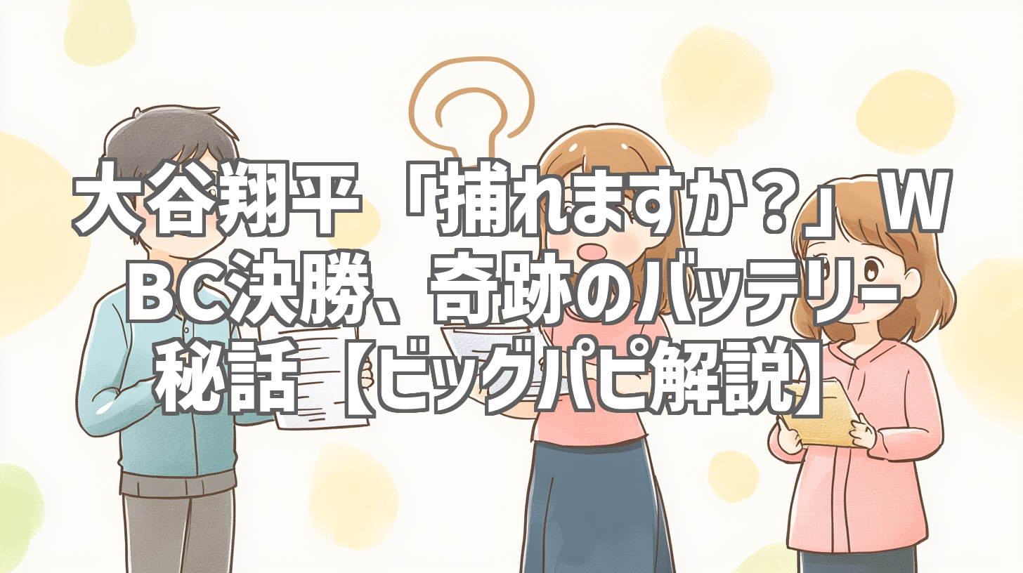 WBC決勝、あの歴史的な瞬間、大谷翔平がマウンドに上がり、トラウトとの劇的な対決を制したシーン。誰もが固唾を飲んで見守った、まさに伝説の一幕です。今回ご紹介するのは、YouTubeチャンネル「ビッグパピが監督になってくれ」が、その裏側にあった知られざるドラマを、独自の視点で深く掘り下げた動画です。あの時、何が起きていたのか? 大谷翔平と中村悠平、初バッテリーの奇跡の裏側を、ビッグパピならではの熱い解説で紐解きます!