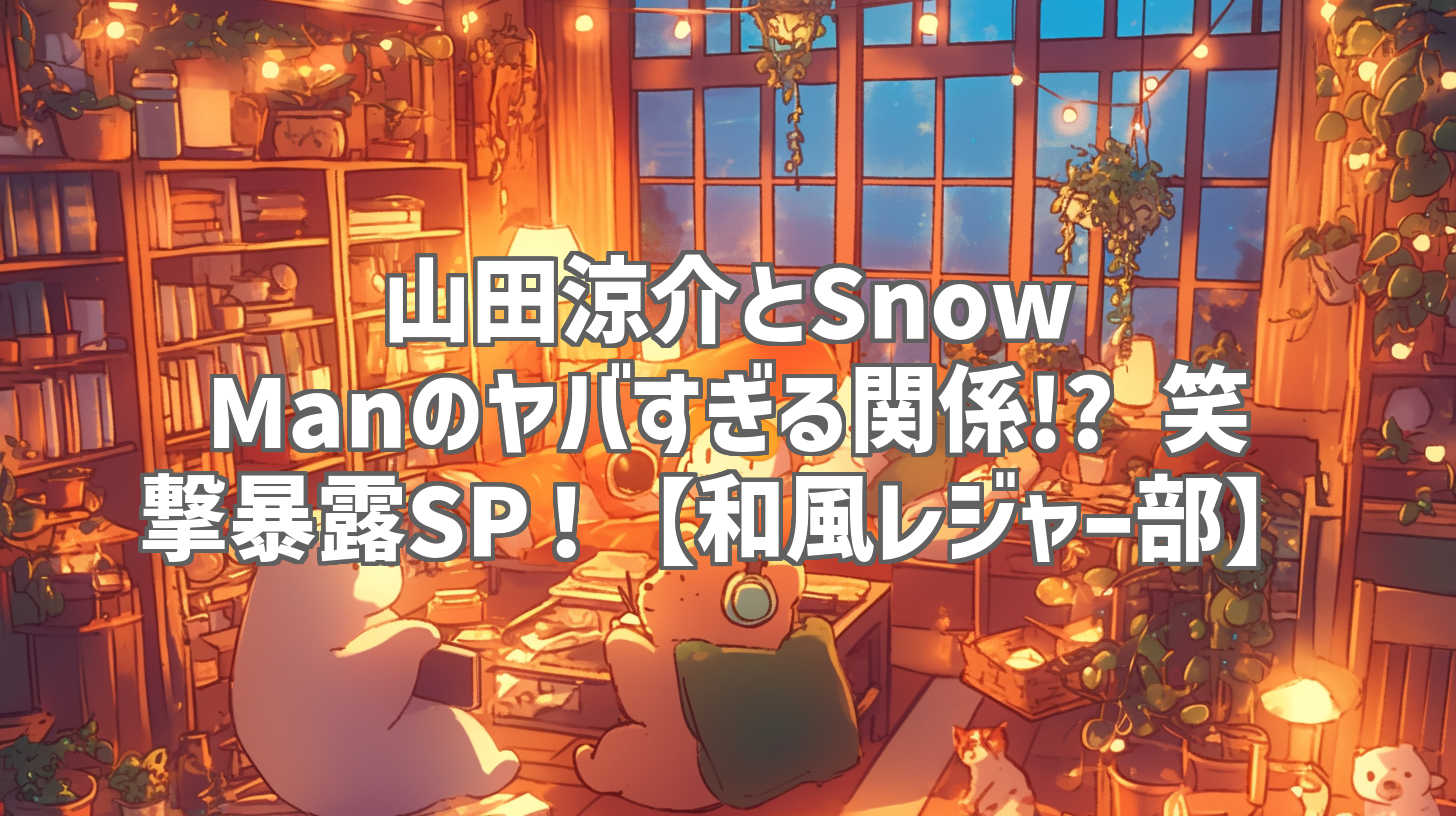 「山田涼介とSnow Manのヤバすぎる関係!? 笑撃暴露SP!【和風レジャー部】」は、短い時間の中に笑いが凝縮された、非常におすすめの動画です。山田涼介さんとSnow Manの意外な関係を知ることができるだけでなく、日々のストレスを吹き飛ばしてくれること間違いなし!