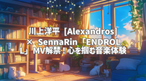 川上洋平 [Alexandros] × SennaRin「ENDROLL」MVは、音楽、映像、ストーリー、全てにおいて完成度の高い作品です。二人の才能が融合し、新たな音楽体験を提供してくれます。まだ視聴していない方は、ぜひ一度ご覧ください!きっと、あなたの心を掴んで離さないはずです。そして、SennaRin official YouTube channelもチェックして、彼女の音楽の世界に浸ってみてください。